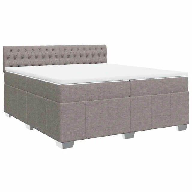 vidaXL Box spring postelja z vzmetnico taupe 200x200 cm blago