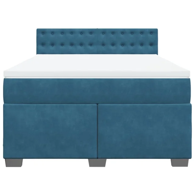 vidaXL Box spring postelja z vzmetnico temno modra 140x200 cm žamet