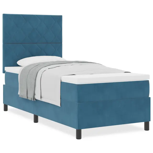 vidaXL Box Spring postelja z vzmetnico temno modra 90x200 cm žamet