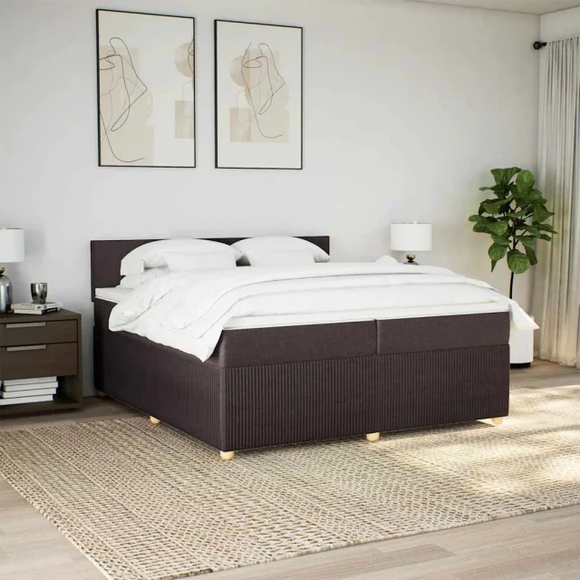 vidaXL Box spring postelja z vzmetnico temno rjav 200x200 cm blago