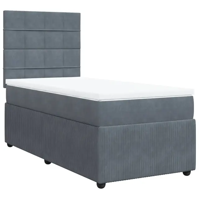 vidaXL Box spring postelja z vzmetnico temno siv 90x190 cm žamet
