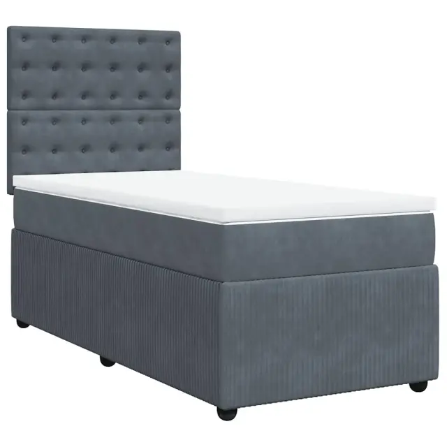 vidaXL Box spring postelja z vzmetnico temno siv 90x190 cm žamet