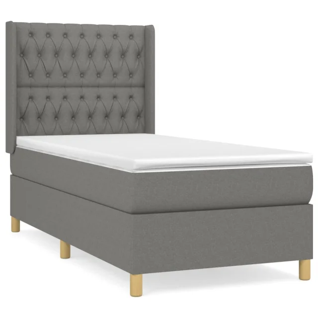 vidaXL Box spring postelja z vzmetnico temno siva 100x200 cm blago