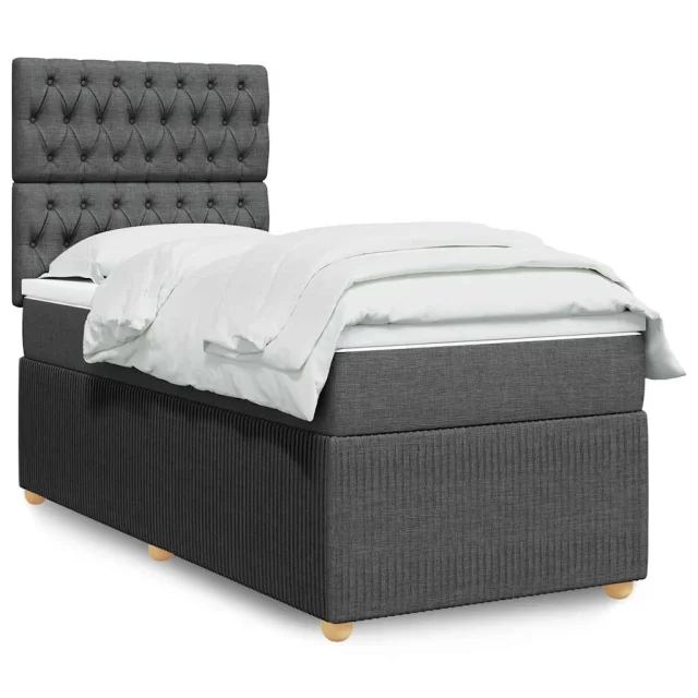 vidaXL Box spring postelja z vzmetnico temno siva 100x200 cm blago