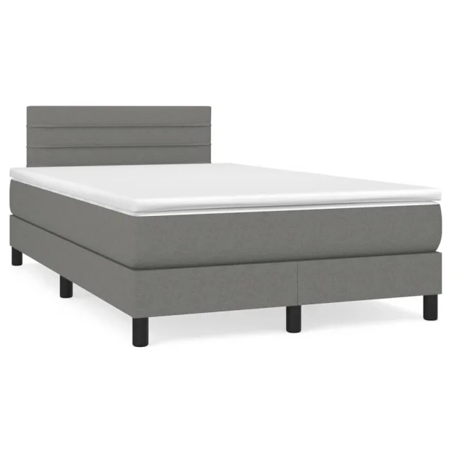 vidaXL Box spring postelja z vzmetnico temno siva 120x200 cm blago