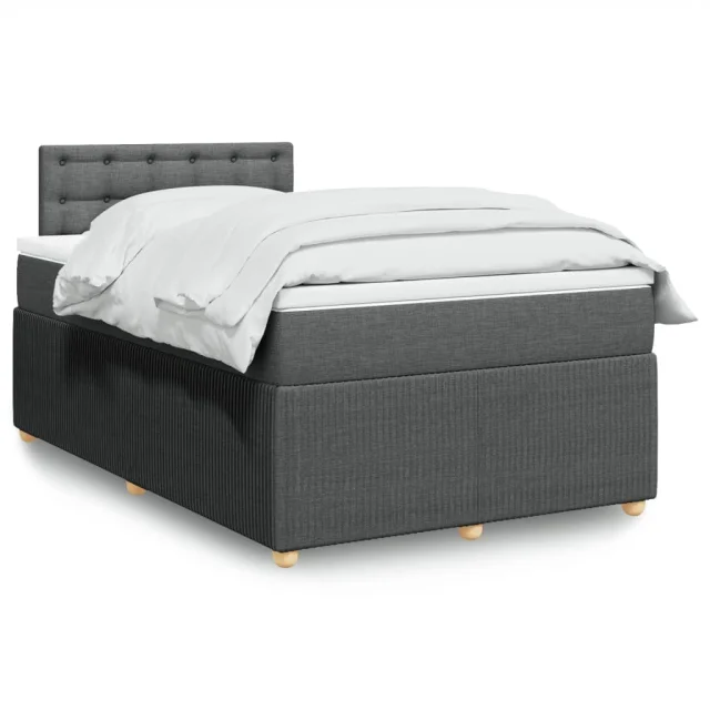 vidaXL Box spring postelja z vzmetnico temno siva 120x200 cm blago