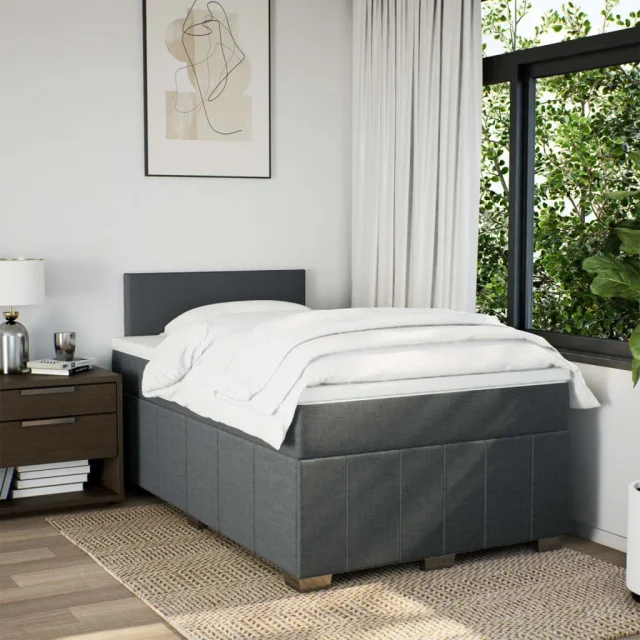 vidaXL Box spring postelja z vzmetnico temno siva 120x200 cm blago