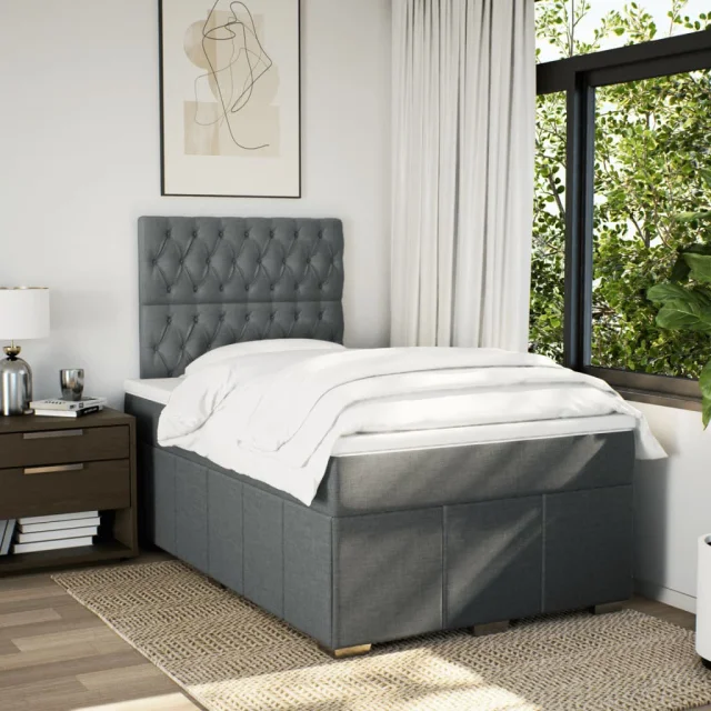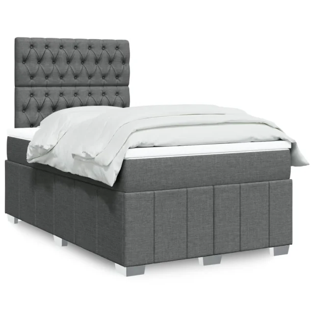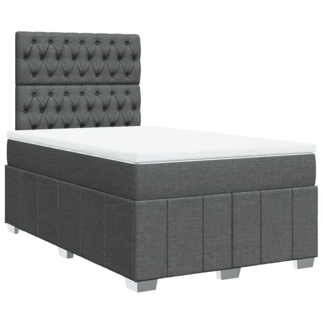vidaXL Box spring postelja z vzmetnico temno siva 120x200 cm blago