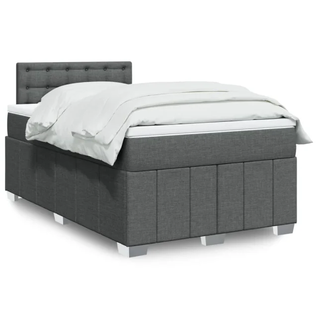 vidaXL Box spring postelja z vzmetnico temno siva 120x200 cm blago