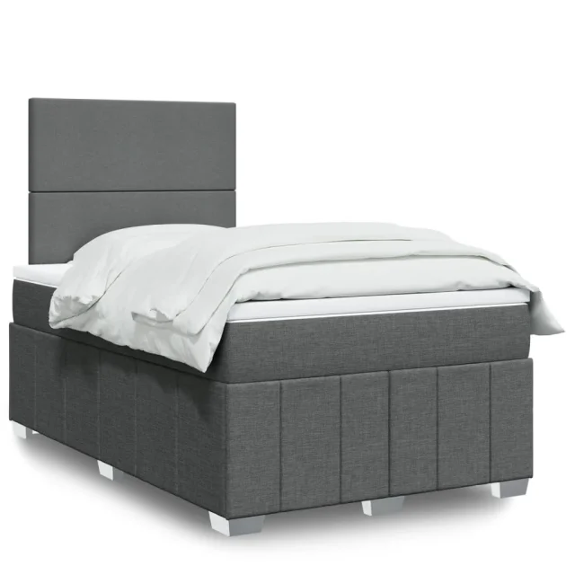 vidaXL Box spring postelja z vzmetnico temno siva 120x200 cm blago
