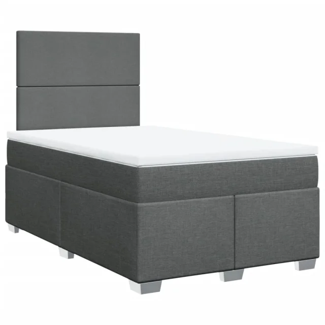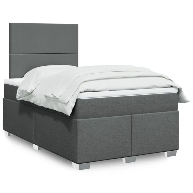 vidaXL Box spring postelja z vzmetnico temno siva 120x200 cm blago