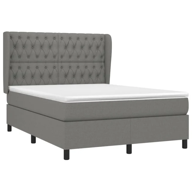 vidaXL Box spring postelja z vzmetnico temno siva 140x200 cm blago