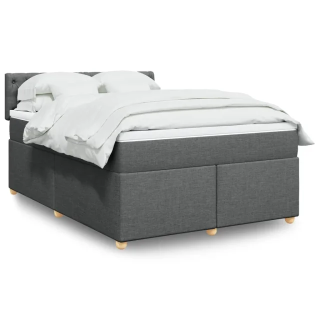 vidaXL Box spring postelja z vzmetnico temno siva 140x200 cm blago
