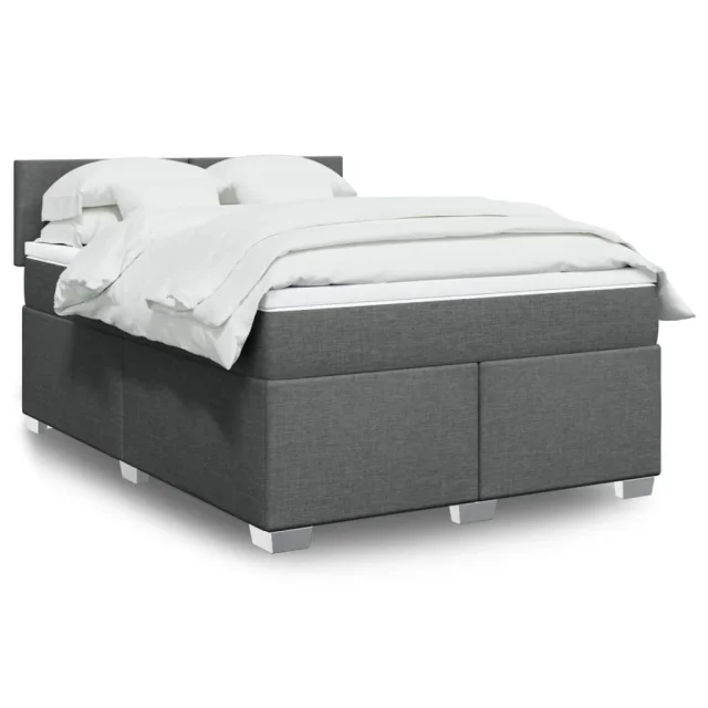vidaXL Box spring postelja z vzmetnico temno siva 140x200 cm blago