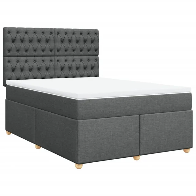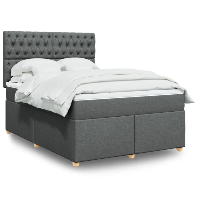 vidaXL Box spring postelja z vzmetnico temno siva 140x200 cm blago