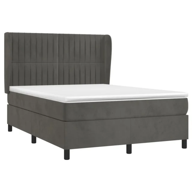 vidaXL Box spring postelja z vzmetnico temno siva 140x200 cm žamet
