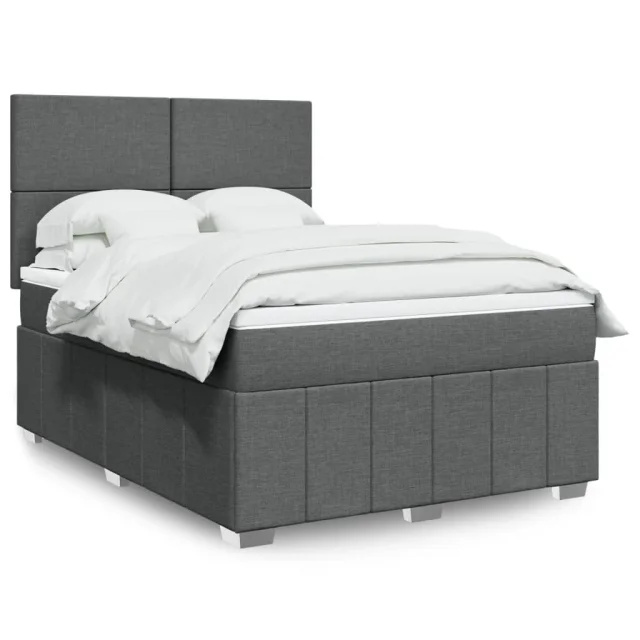 vidaXL Box spring postelja z vzmetnico temno siva 160x200 cm blago