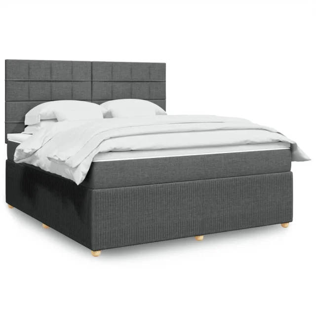 vidaXL Box spring postelja z vzmetnico temno siva 180x200 cm blago