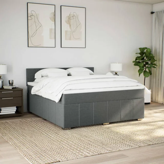 vidaXL Box spring postelja z vzmetnico temno siva 180x200 cm blago