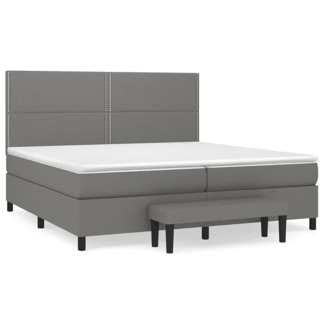 vidaXL Box spring postelja z vzmetnico temno siva 200x200 cm blago