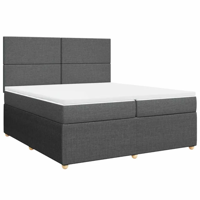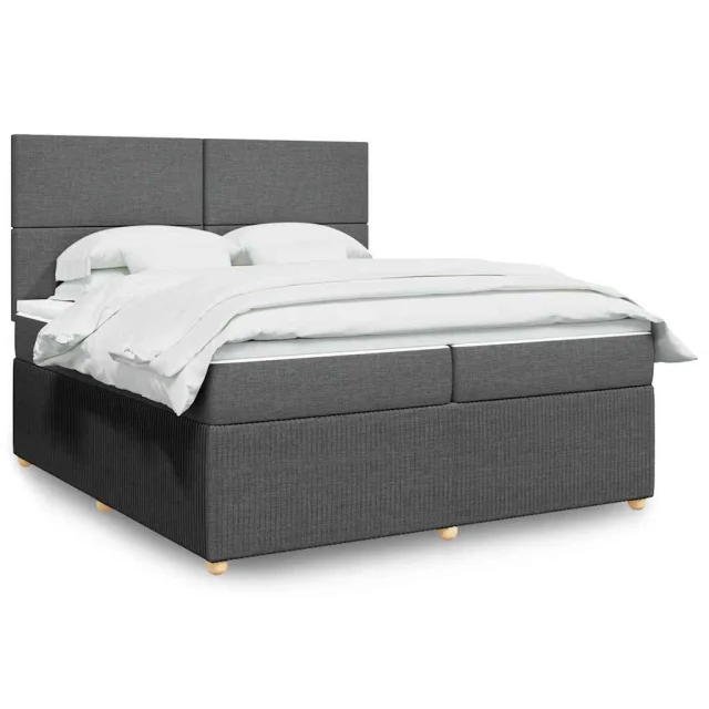 vidaXL Box spring postelja z vzmetnico temno siva 200x200 cm blago