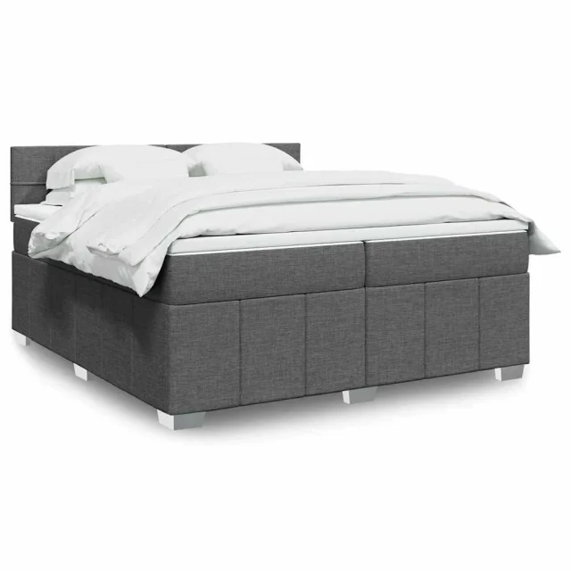 vidaXL Box spring postelja z vzmetnico temno siva 200x200 cm blago