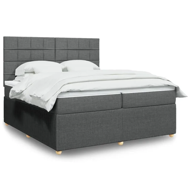 vidaXL Box spring postelja z vzmetnico temno siva 200x200 cm blago