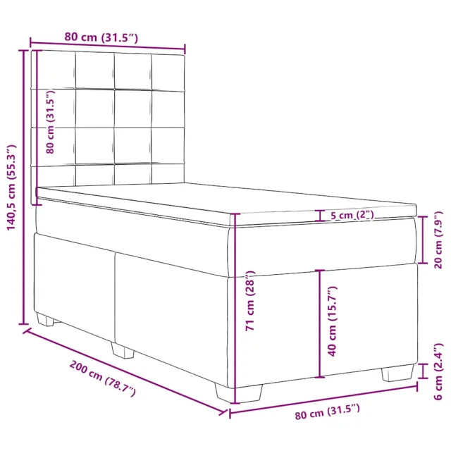 vidaXL Box spring postelja z vzmetnico temno siva 80x200 cm žamet