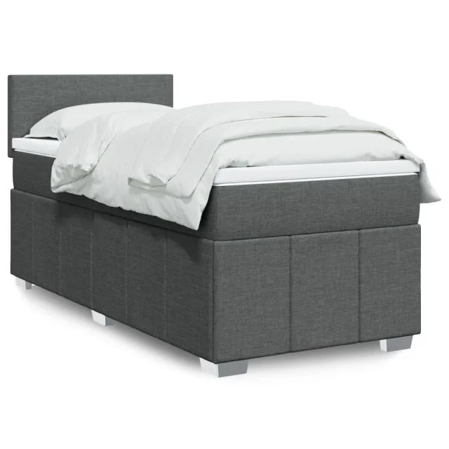 vidaXL Box spring postelja z vzmetnico temno siva 90x200 cm blago