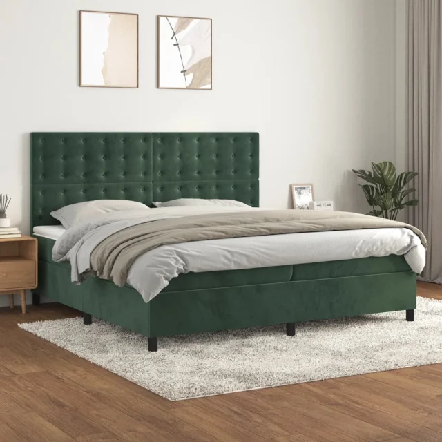 vidaXL Box spring postelja z vzmetnico temno zelena 200x200 cm žamet