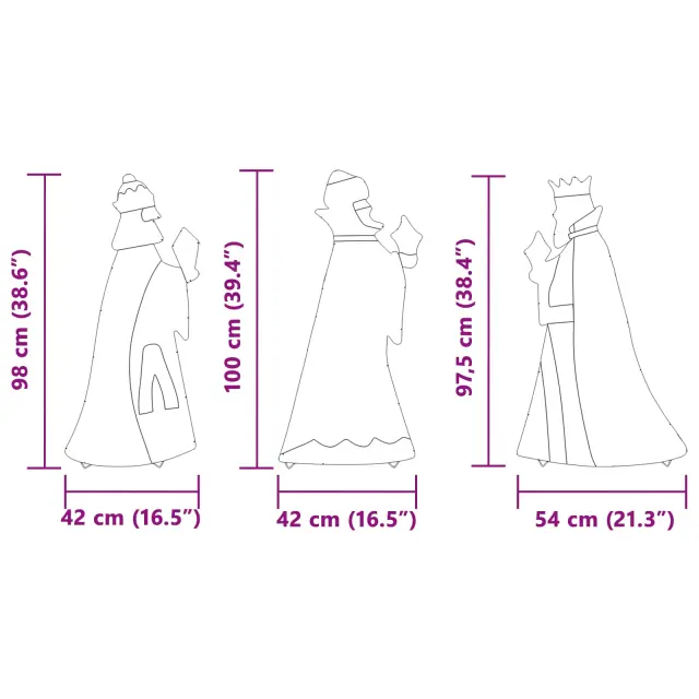 vidaXL Božična Osvetljava 3 pcs Toplo bela 105 cm blago