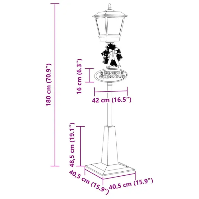 vidaXL Božična ulična luč z lanternom Rdeča 40,5x40,5x180cm Plastika