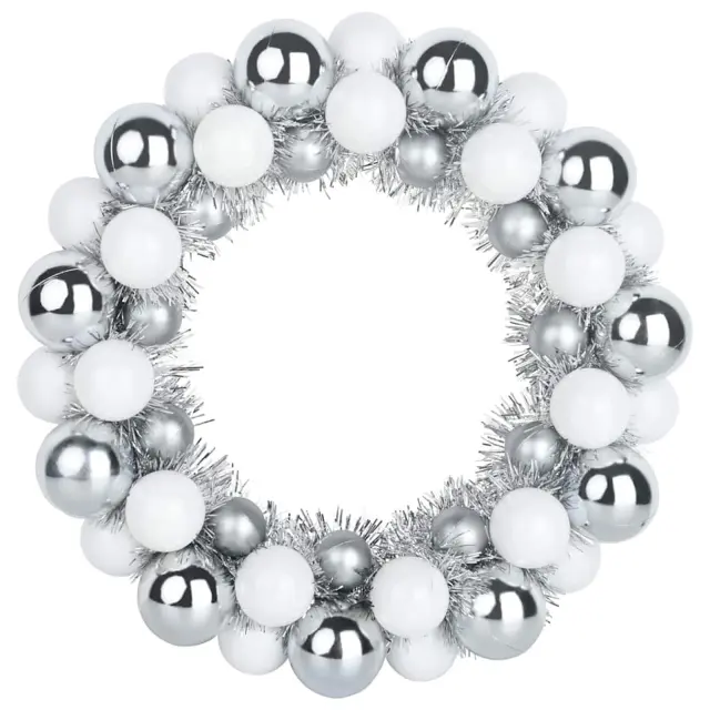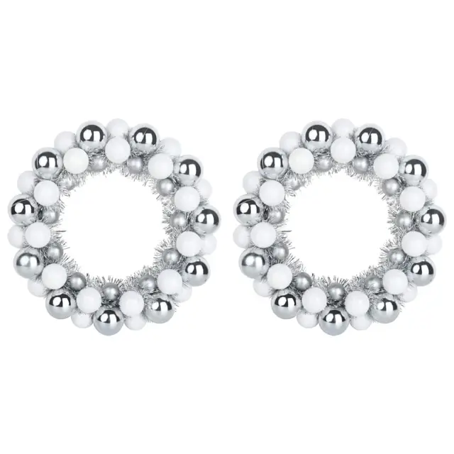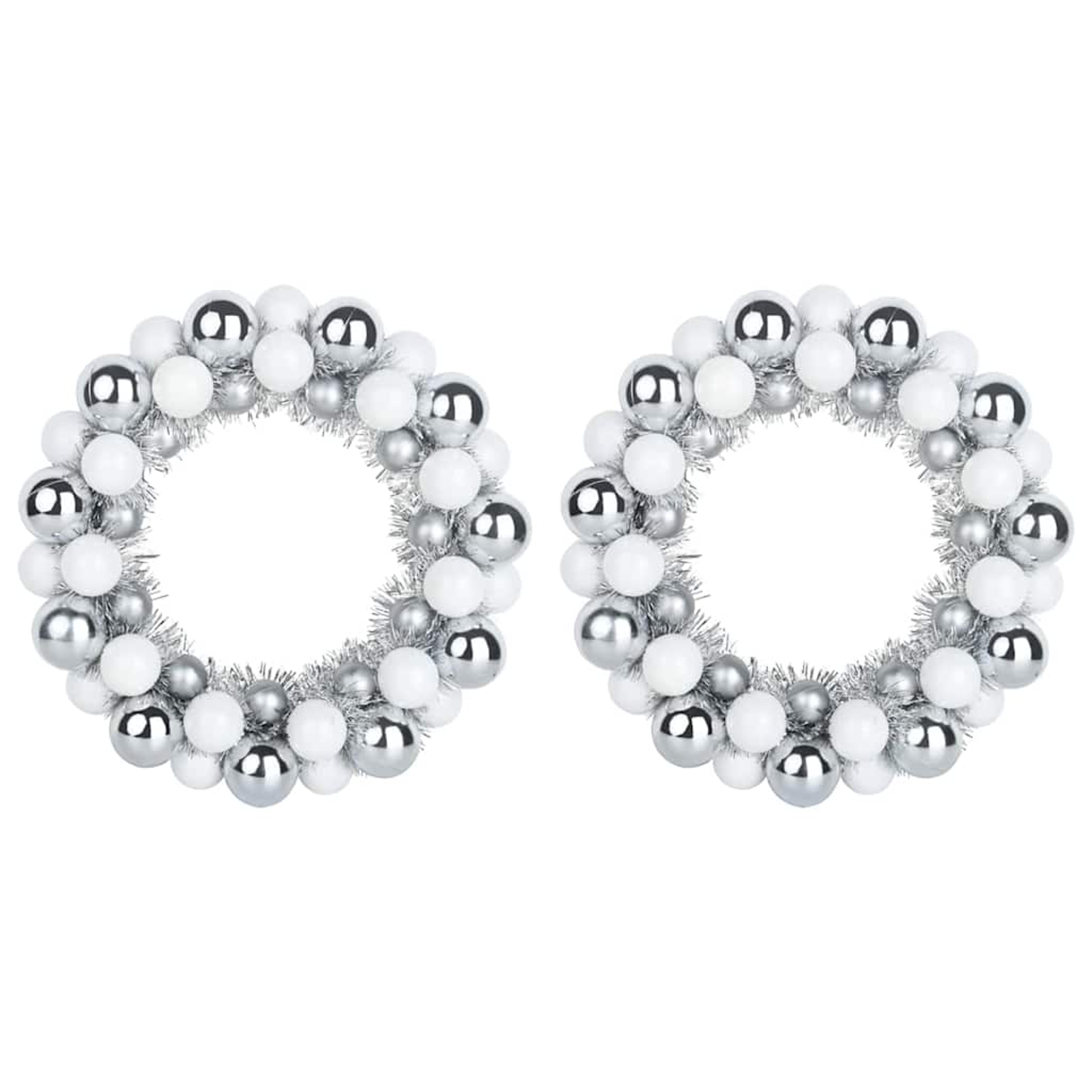vidaXL Božični venci z kroglicami 2 pcs Bela in Srebrna 33 x 33 x 7 cm