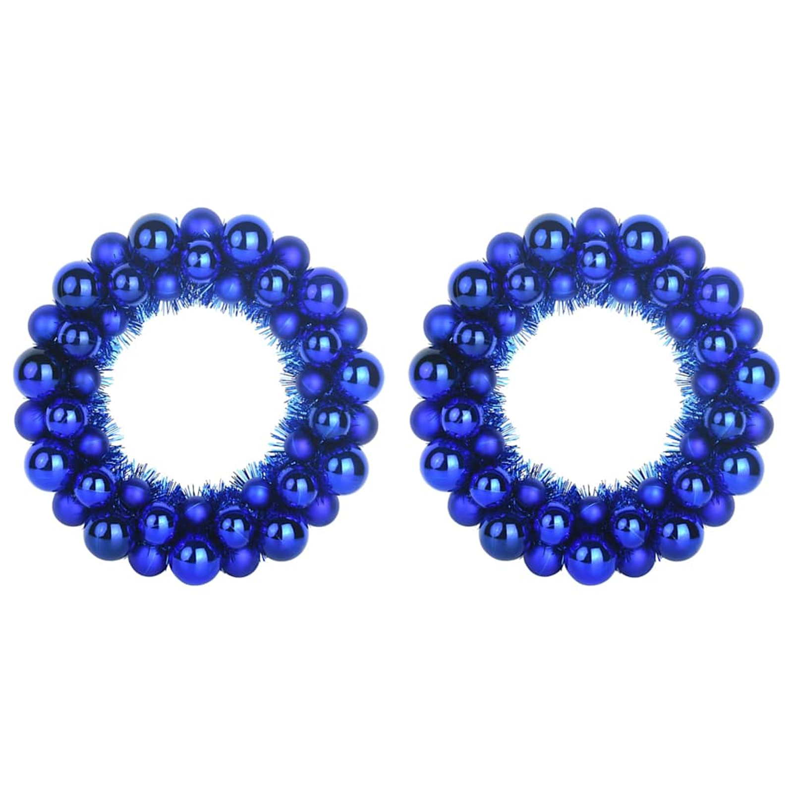 vidaXL Božični venci z kroglicami 2 pcs Modra 33 x 33 x 7 cm