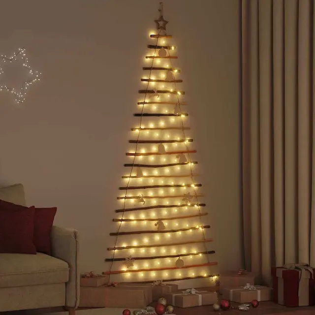 vidaXL Božično drevo med 130 LED Naravna 210 cm polno jesenovo drvo