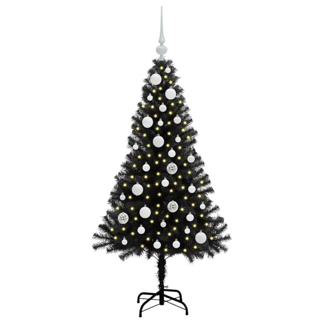 vidaXL Božično drevo med 150 LED z stojalom Črna 120 cm PVC