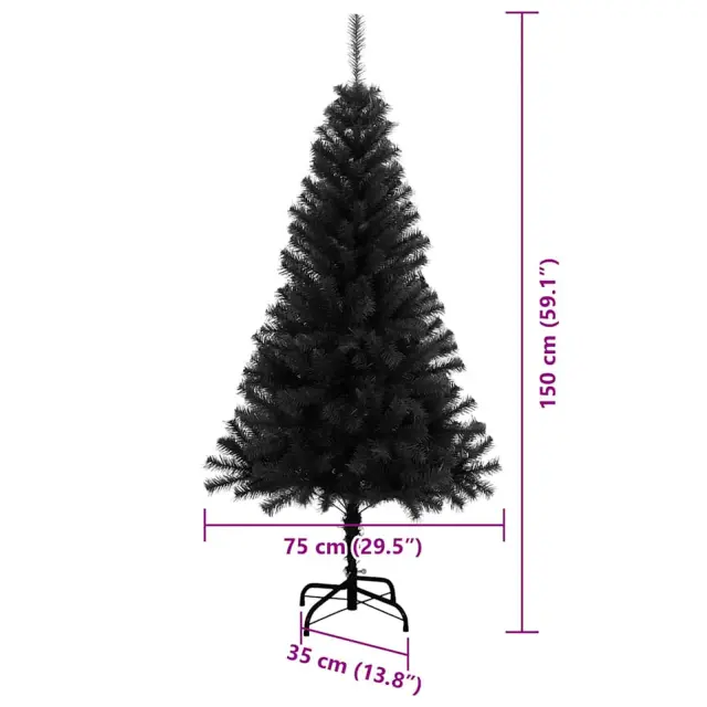 vidaXL Božično drevo med 150 LED z stojalom Črna 150 cm PVC