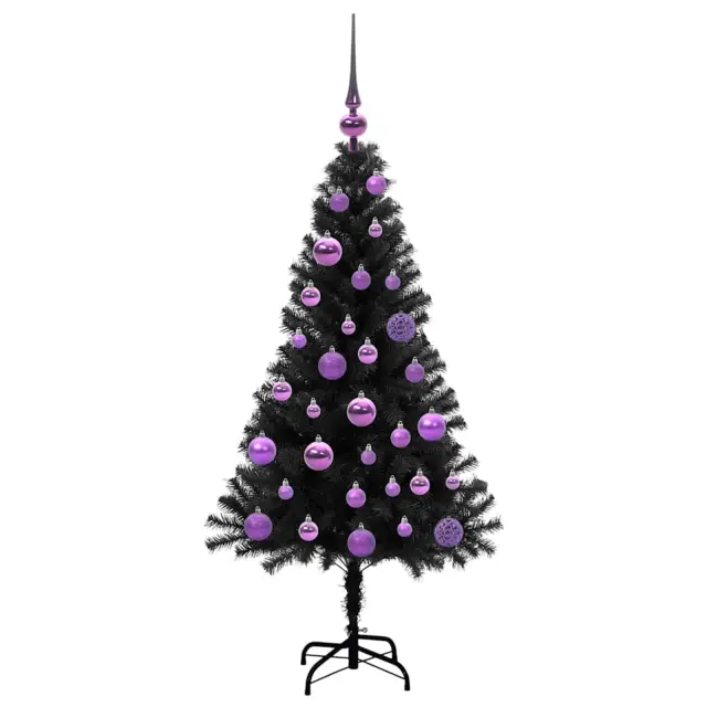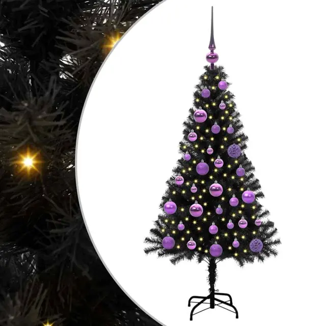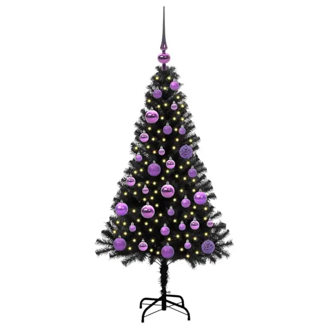 vidaXL Božično drevo med 150 LED z stojalom Črna 120 cm PVC