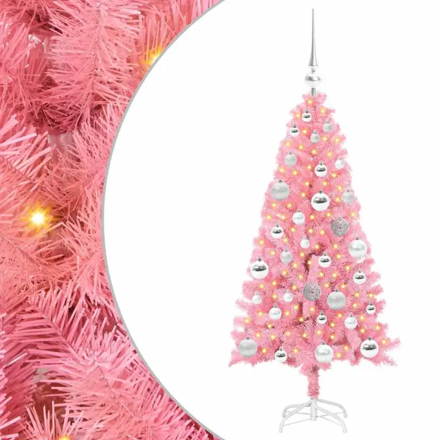 vidaXL Božično drevo med 150 LED z stojalom Roza 120 cm PVC
