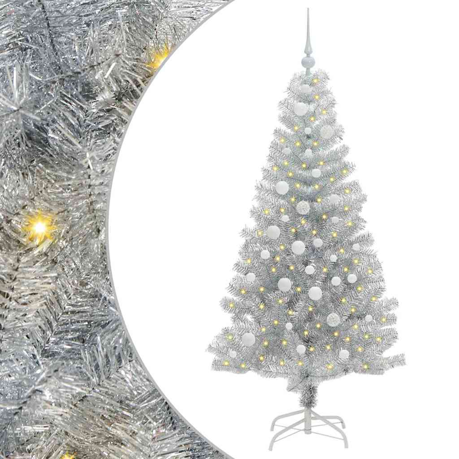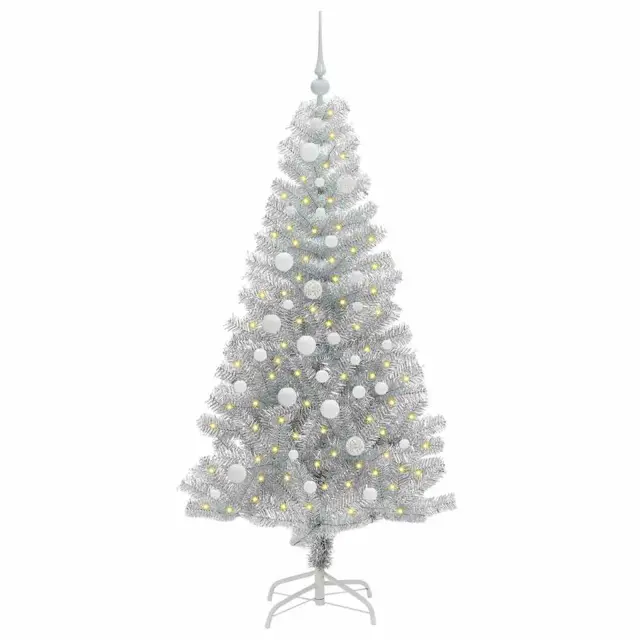 vidaXL Božično drevo med 150 LED z stojalom srebrna 150 cm PET