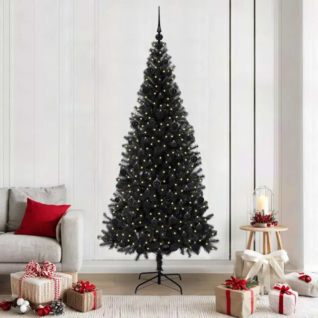 vidaXL Božično drevo med 300 LED z stojalom Črna 210 cm PVC