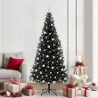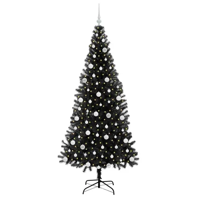 vidaXL Božično drevo med 300 LED z stojalom Črna 210 cm PVC
