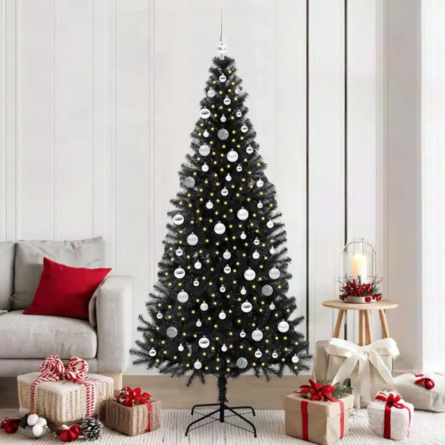 vidaXL Božično drevo med 300 LED z stojalom Črna 210 cm PVC