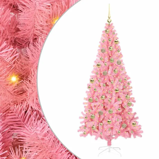vidaXL Božično drevo med 300 LED z stojalom Roza 210 cm PVC