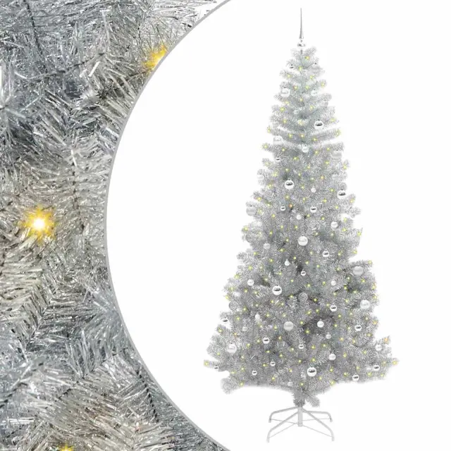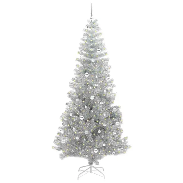 vidaXL Božično drevo med 300 LED z stojalom srebrna 240 cm PET