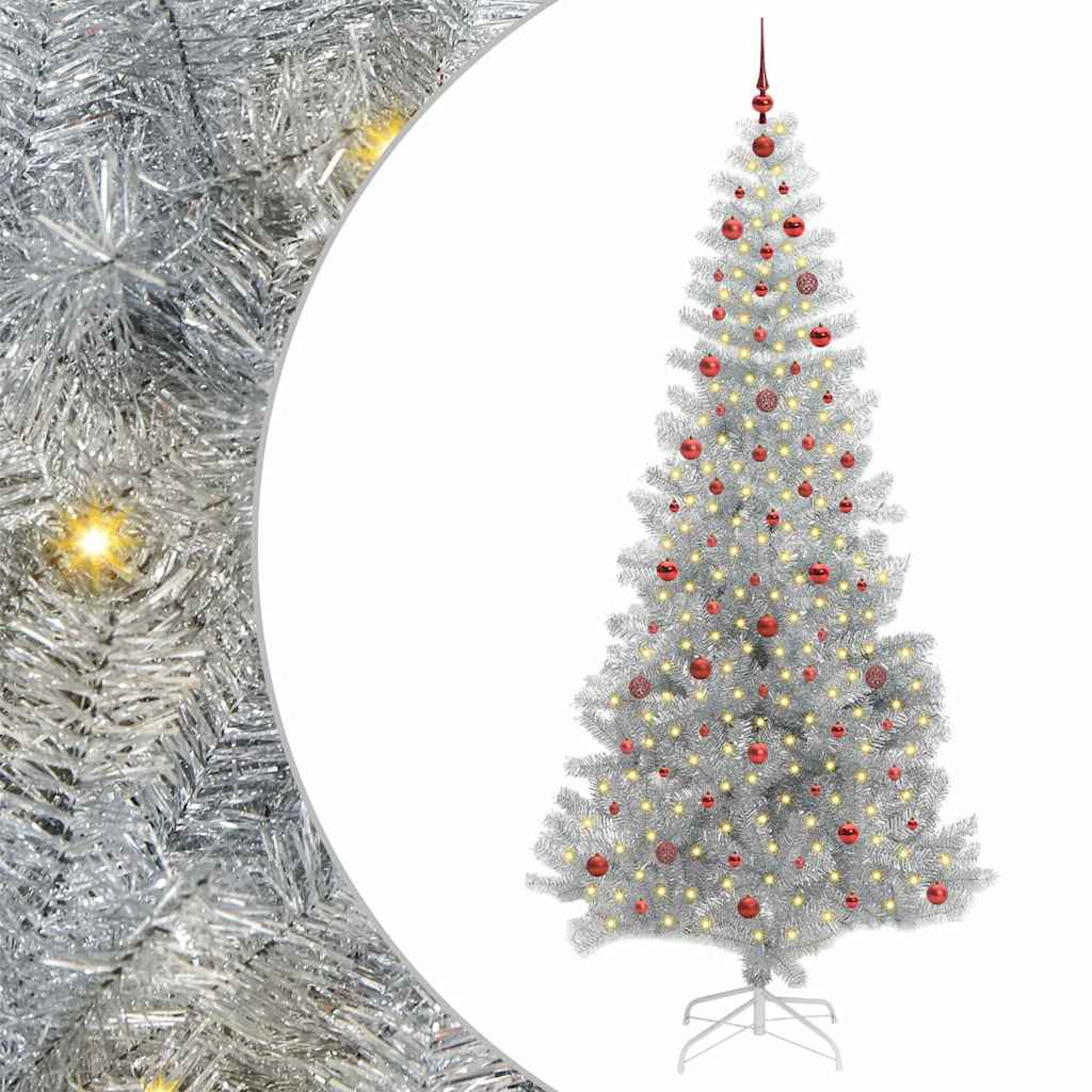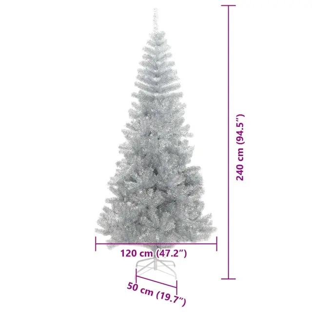 vidaXL Božično drevo med 300 LED z stojalom srebrna 240 cm PET