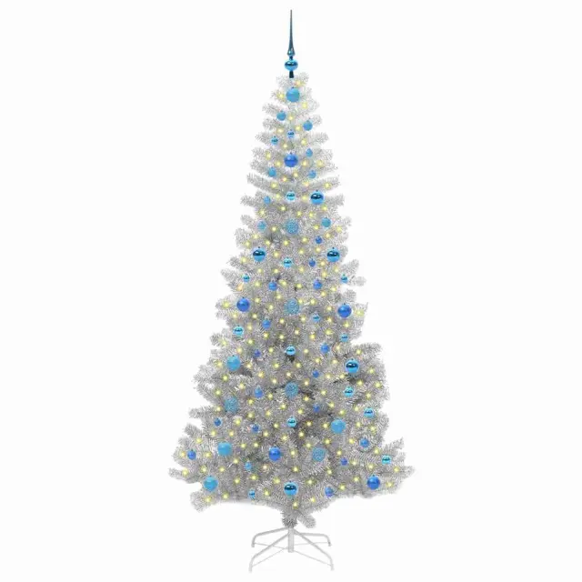 vidaXL Božično drevo med 300 LED z stojalom srebrna 210 cm PET