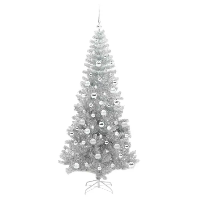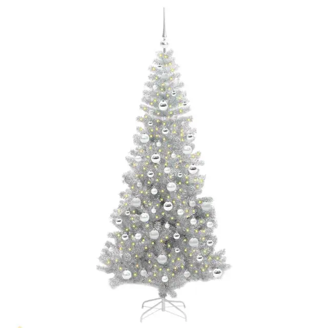 vidaXL Božično drevo med 300 LED z stojalom srebrna 180 cm PET