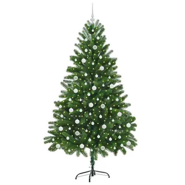 vidaXL Božično drevo med 300 LED z stojalom Zelena 210 cm PE