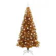 vidaXL Božično drevo med 300 LED z stojalom Zlata 210 cm PET